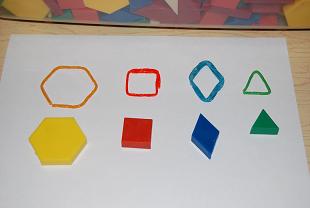 12). Have the children trace the outlines of pattern block shapes with the Wikki Stix.
