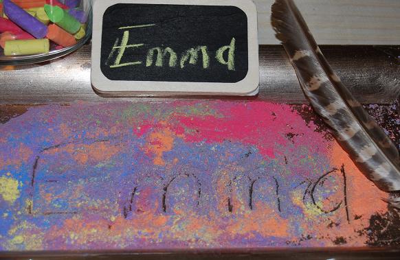 CHALK DUST and FEATHER WRITING TRAY for PRESCHOOL!