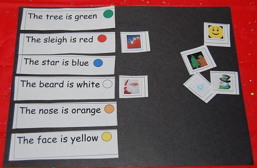 Extension idea: Reverse the directions and have the children look first at the picture card and try to determine which sentence strip it goes with.