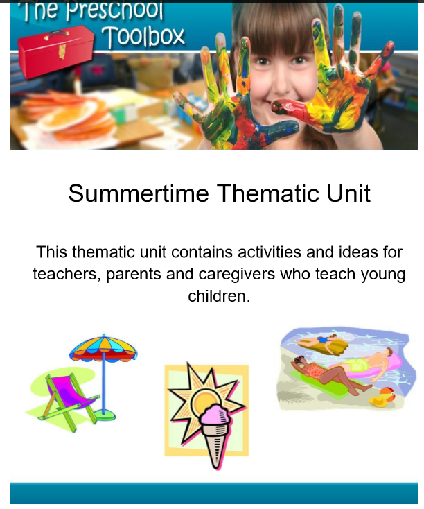 The Summertime Thematic Unit is a 182 (total) page unit for use in a home, classroom, or center setting with Preschool and Kindergarten. The unit includes FOUR themes in one: Bubbles, General Summer, Beach, and Patriotic Themes. If you plan to use the summertime theme to accompany core studies and playful learning, you will have many activities left for “new” units the following year. This theme includes playful learning activities for math, science, and literacy as well as numerous songs, poems, art and crafts activities, gross motor ideas, food/food crafts, dramatic play, and book suggestions. A 53 page instructional manual serves as a guide with detailed instructions/photos for games, projects, and activities. There are 5 Power Point presentations and 47 activity files (some with numerous pages for differentiated learning) that are ready to download and print. Suggestions for younger or slightly older children are given where possible.