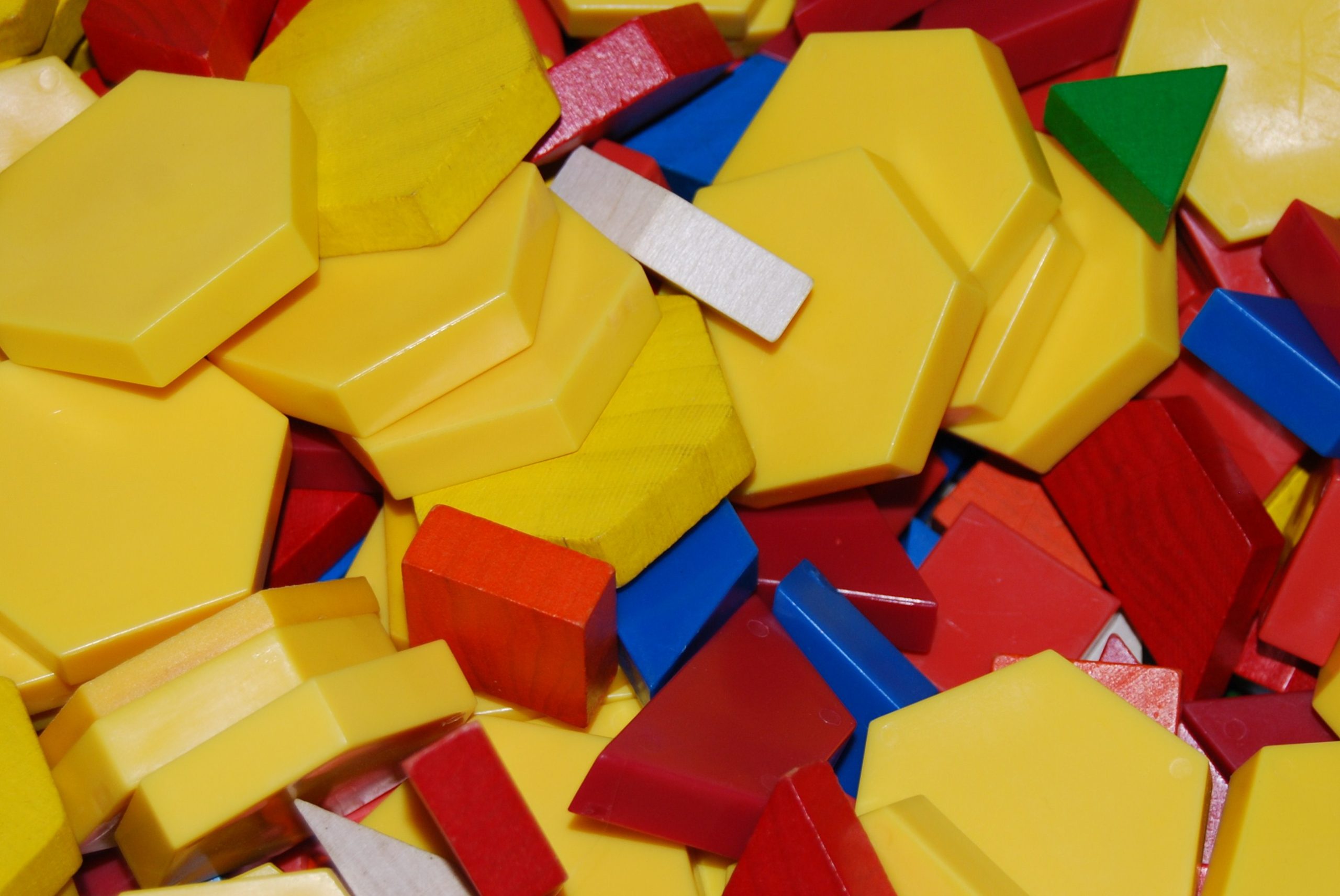 Our preschoolers have been using pattern blocks for most everything lately:  to make buildings/towers, as “food” in our kitchen, to make domino runs, and to create intricate designs on their own.   As with most of our classroom materials, our kids often find the most creative suggestions when left to explore on their own.  Our newest creations:  PATTERN BLOCK PRINTED FLAGS!