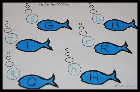 2. Students can copy the letter on the fish and write the matching upper case letter