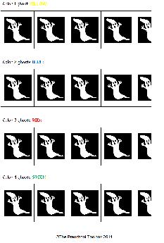 Print one copy of the Counting Color Ghosts.pdf for each child. Read one line of the text to the children and color one row of ghosts together as a class. Tell the children to look at the number and the color to determine just how many ghosts they should color in.