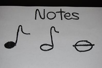 Whole note: a whole note gets FOUR beats. Have the children use Wikki Stix to create a whole note. Ask the children to clap and hold the clap for four counts. We clap and say, “Whole/ note/ four/ beats/” before we clap again.