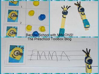 Since the arrival of Despicable Me 2 in theatres this summer, our kids are, once again, enthralled with MINIONS! We like to draw them, color them, create them, play with them, and trade Minion toys brought from home. In order to capitalize on our current interest, I’ve made MINIONS our back-to-school theme this year! I hope your kids will enjoy creating, learning, and playing with the activities, too!