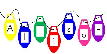 2. You can also use the pictures of the lights as a template to cut out the “lights” from colored construction paper. Students would continue the activity as described above by gluing the construction paper “lights” onto their paper and then writing the letters of their name on each of the bulbs. Finally, students can use a black (or any desired color) string to glue onto their paper connecting the lights to form a “string of lights.”