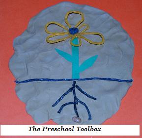 Have the children make a large play dough area on a table, placemat, or laminated board. The play dough will act as “glue” so none is needed to hold the collage materials in place. Hang a visual for younger children to look at, if desired. Younger children will use the collage materials in many creative ways! Older children, too, will amaze you with their flower creations!