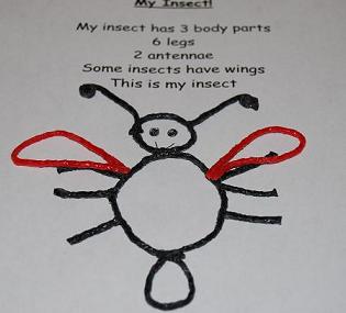 As you read each line of the text at the top of the paper, have the child make that part of their insect with the Wikki Stix. When complete, the children can share their insect creations with the rest of the class and discuss how each picture looks different even though each child made the same insect parts.
