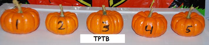 PUMPKIN RELAY GAME: Use the miniature pumpkins outside for a relay game. Number the pumpkins 1-5. Set the 5 pumpkins in an horizontal line several yards in front of the children. Leave space between the pumpkins for the children to run AROUND them. Have the children line up or make two “teams” (for teams, you will need 5 pumpkins for each team.) An adult will start the game by calling out a number (1, 2, 3, 4, or 5). Demonstrate “running around” a pumpkin to the children! The first child in each of the lines should run around the correct pumpkin and go back to tag the 2nd child in the line. When tagging another child, the “runner” must also call out what # of pumpkin to run around next. Some children will forget to call a pumpkin # out…it’s ok; let the children run around the pumpkin they wish. The relay is over when each child has had a turn to run around one of the pumpkins. For a competitive game for older students, the first line to have all the players run around a pumpkin is the winner.