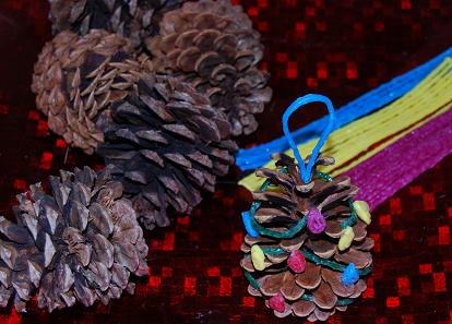 This project is simple using Wikki Stix! The wax coating on the Wikki Stix will adhere to the pinecone and no glue will be necessary! It is a great craft to enhance fine motor skills while crafting a nice ornament to keep or give!