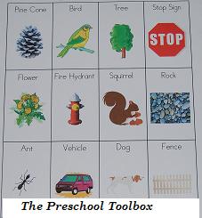 Materials needed: 1 nature walk record sheet.pdf per child, 1 clipboard per child, crayons or markers. Take your students outside on a nature walk so they can use their sense of sight to find and record the items listed on the worksheet. As each child finds one of the items, they can circle or cross off the item from their list. When you return back home or to the classroom, discuss the things the children found (compare and contrast the items that each of the children found.) One child may not have seen a tree, but others may have. See if the children can recall what kind of items they found. For example, one child may have crossed off the vehicle after seeing a blue car. Another child may have seen a red van. This activity can lead to a large follow-up discussion.