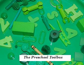 Tell the children they are going on a classroom (or house) color hunt for GREEN items. Give the children bags to collect their “treasures” in. Allow ample time for searching (assist younger children who may not know their colors) before calling the children back to the rug or carpet area. Have the children pick one or two items from their bags to share with the rest of the class. After sharing, have the children place all their items into a bucket or bin for observations and sensory explorations. *We set out different green counters, beads, blocks, etc. in the classroom for the children to find before our scavenger hunt started. After sharing and placing all the items on a tray, the children found that we had many duplicate items. They began designing patterns on their own!