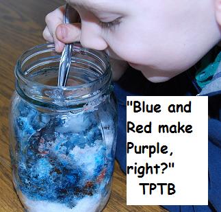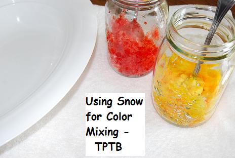 Materials needed: One package of candy hearts for each small group, containers for color mixing, spoons, food coloring (the children can use Koolaid, if desired) and water, snow, or ice shavings (depending on the climate where you live and materials available.)
