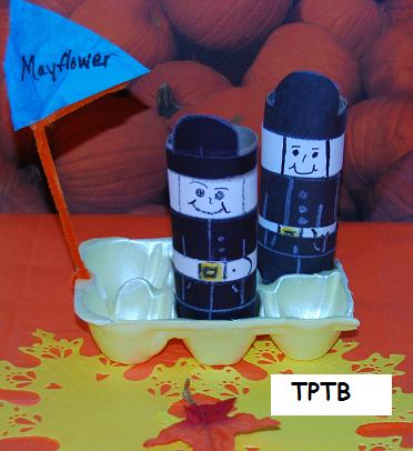 The children can color the buckles or face as they wish. We put flags on 1/2 of an empty egg carton and let the kids play with the pilgrims and the “Mayflower” boats. So simple, but it was one of the most requested Thanksgiving activities we’ve done. The kids loved putting the Pilgrims in the boats, playing with them on the floor or tables, and making up Thanksgiving stories to retell with their pilgrims. Please excuse the “primitive” file, but we had fun and thought we’d share with you:).