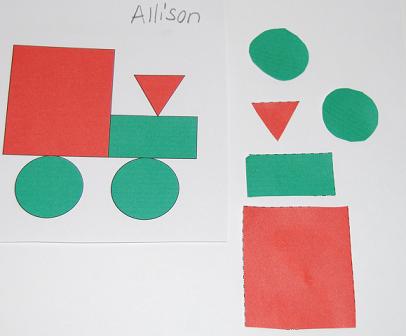 Print the train (preferably on heavy paper) for your children. Have the children cut out all the shapes on the bottom part of the worksheet (assist younger students.) The children must match the bottom shapes to the corresponding shapes on the Christmas Train. After the children match the shapes, have them glue all the pieces in place. Laminate the trains when the children are done for a literacy or math display.