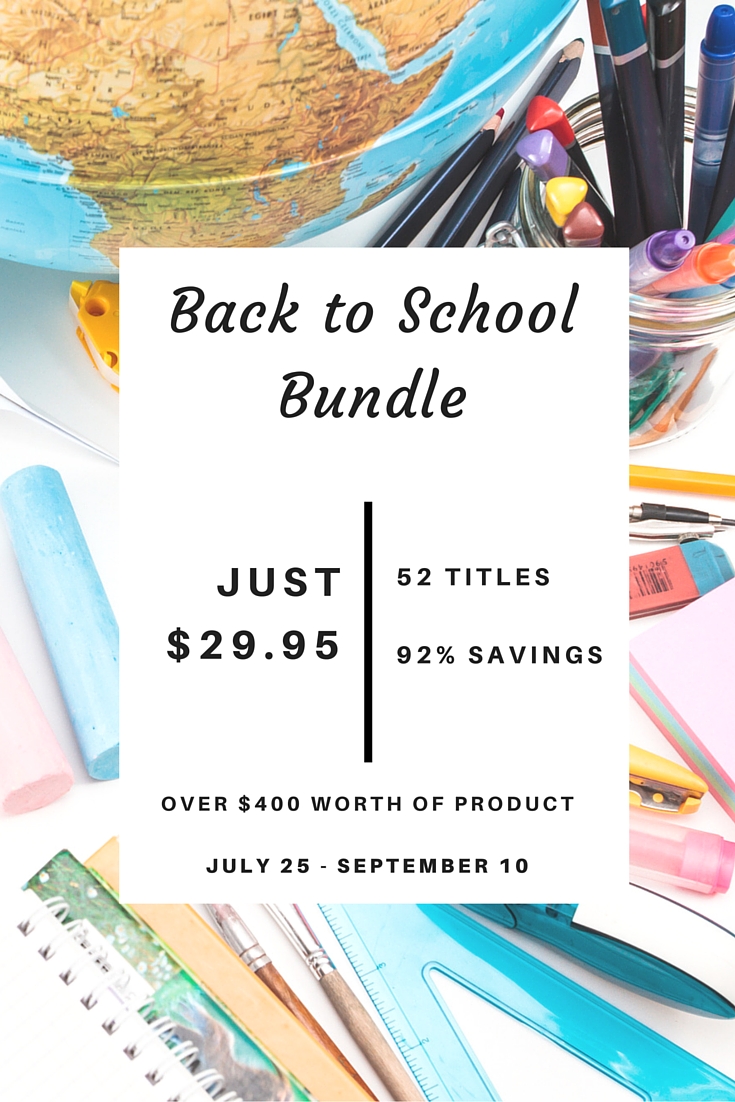 Please Note: This sale bundle is now closed for purchases. We’re excited to offer a “trunk load” of back-to-school resources created just for your own students and kids. Whether you homeschool, provide childcare, work in center-based care, or teach in a public classroom, there are over 52 Titles and 3800 pages of resources in an instant download. Until 10 September 2016 we can offer the entire resource collection to you, our readers, at a 92% discount.