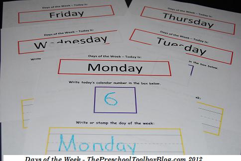 By Halloween, our children have a good grasp on the Days of the Week. We are beginning to write and stamp the words that correspond with each day. The file above includes Monday-Friday and a box where the children can write the calendar number for that specific day.