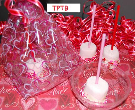 Materials needed: White or strawberry large marshmallows, craft sticks or straws, white chocolate bark, waxed paper, and assorted Valentine’s cookie decorations.