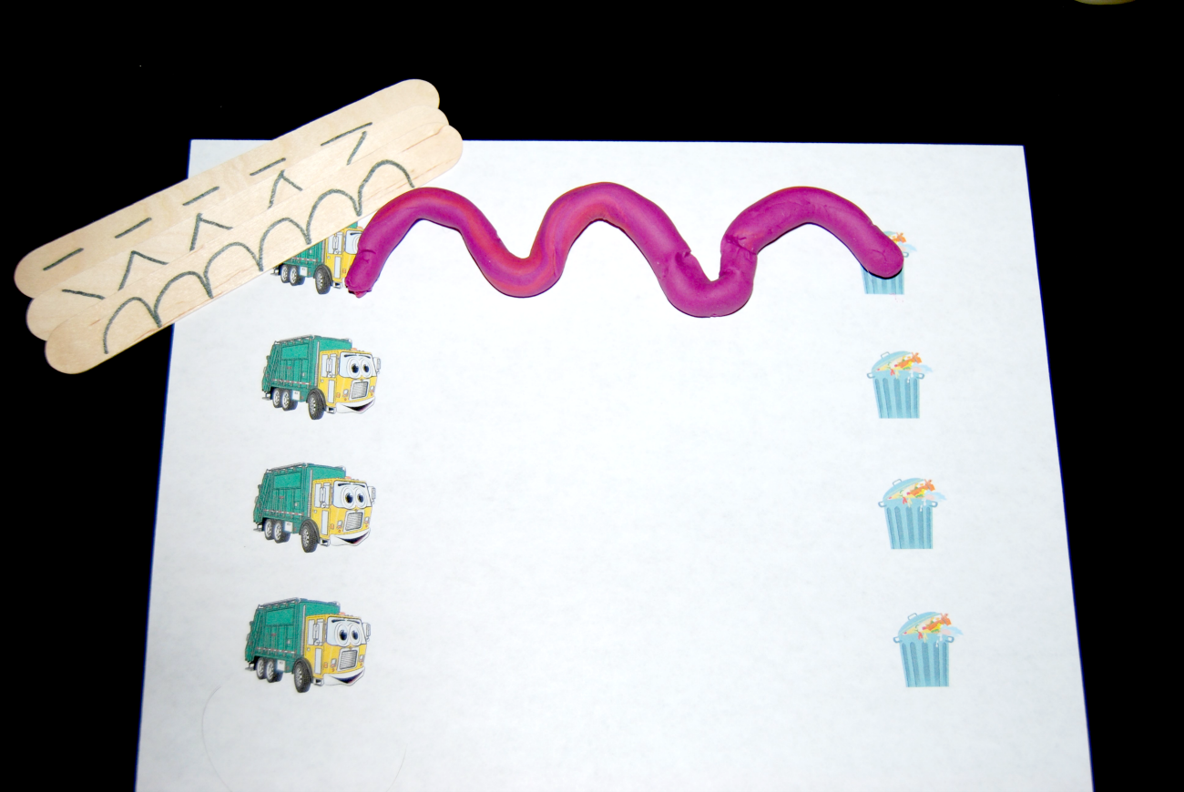 Garbage Truck Play Dough Pre-Writing Line Paths for Preschoolers