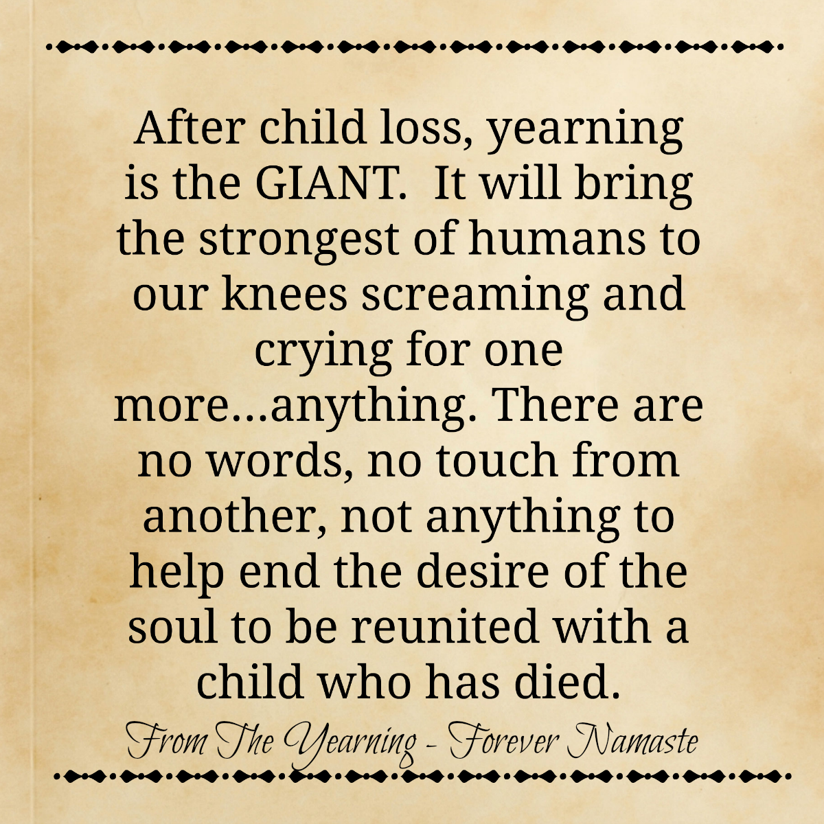 To read more about YEARNING after child loss and my own private journal entries, see Forever Namaste.